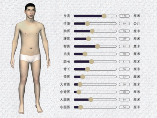3、任何体型都能呈现合体的穿着效果,并根据顾客需要修改衣长、肩宽、三围等尺寸。顾客可以选择衬衣,领带,下装等搭配看整体效果。